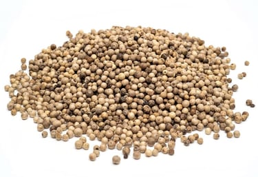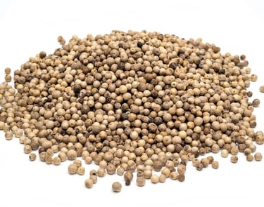 Fully processed white peppercorns with balanced pungency and clean flavour, meeting global quality specs.