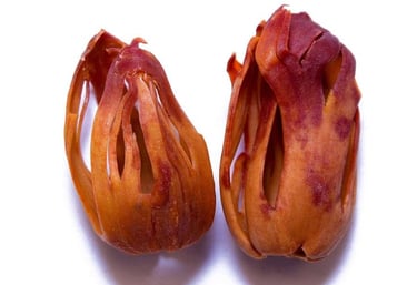 Distinctive lacy aril from nutmeg, high aroma and colour, processed for export quality whole spice markets.